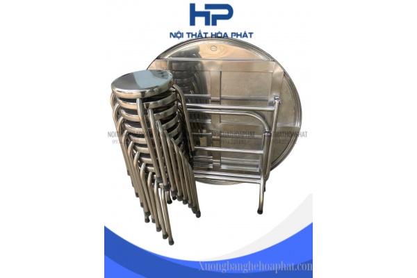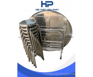 BG01 - Bộ bàn tròn inox 10 ghế hòa phát cao cấp - inox 304 dày 1.4mm