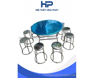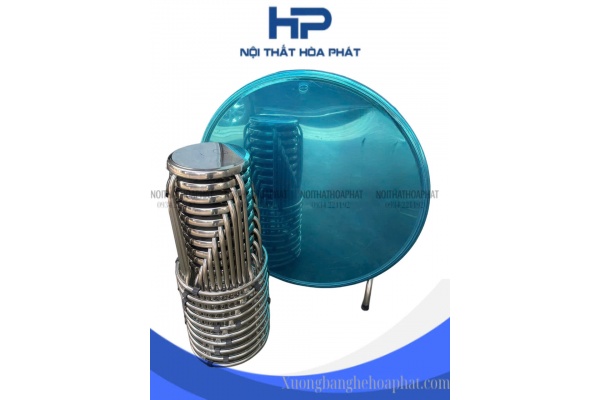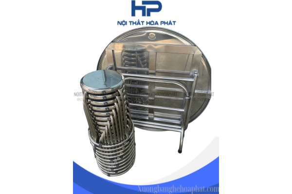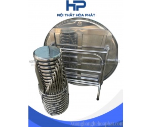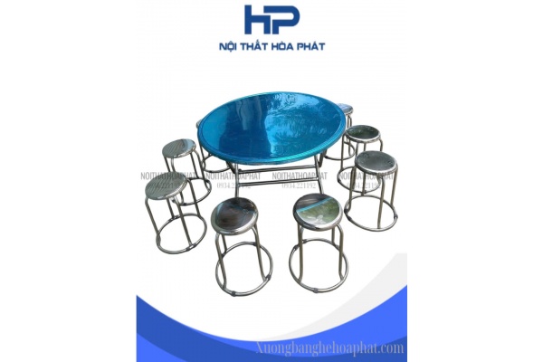 BG07 - Bộ bàn tròn inox 304 10 ghế có viền chân hòa phát cao cấp - inox 304 dày 1.5mm