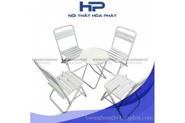BGCF06 - Bộ bàn ghế cafe sắt lá màu trắng ( 1 bàn + 4 ghế )