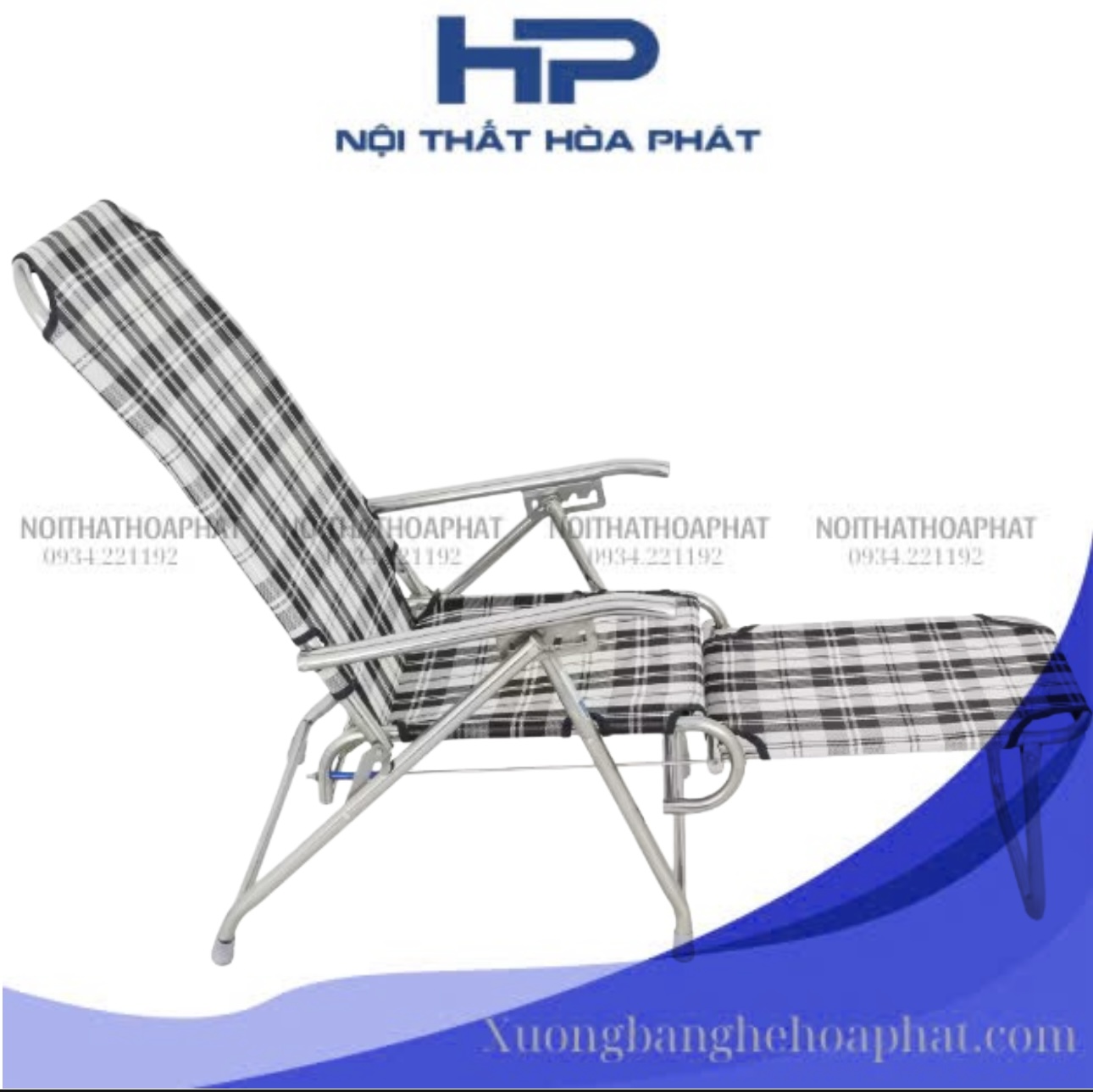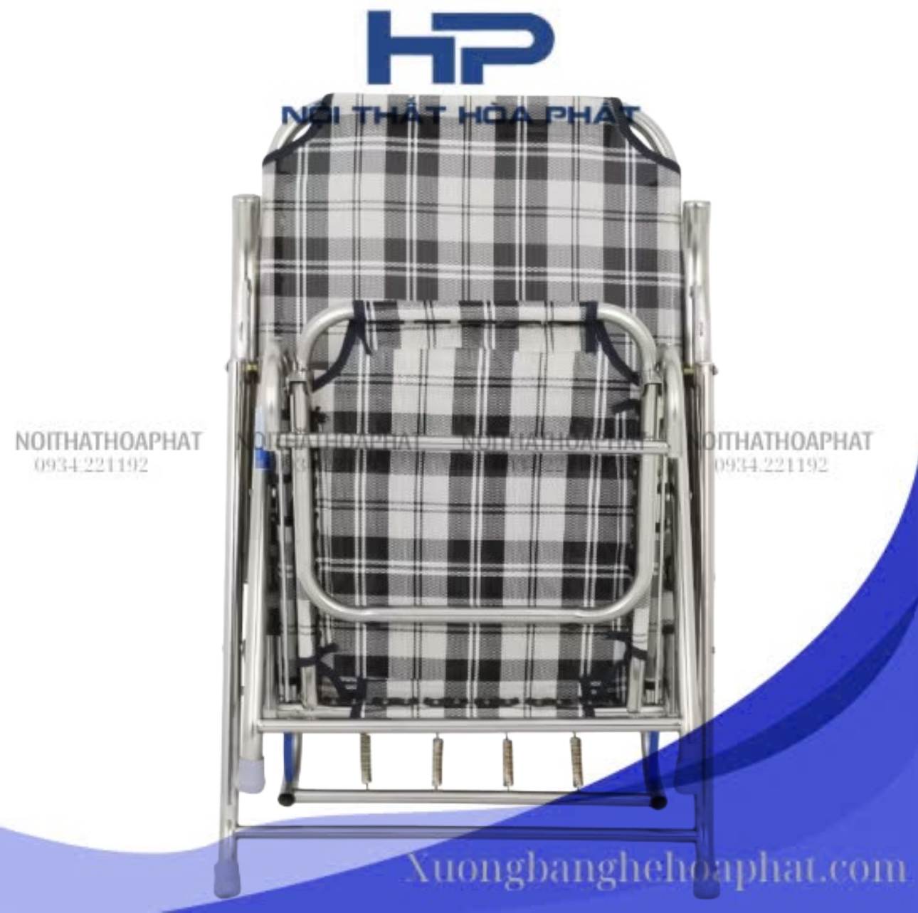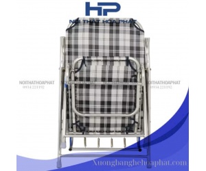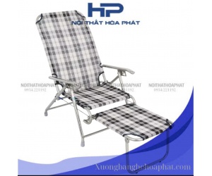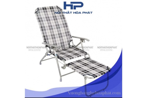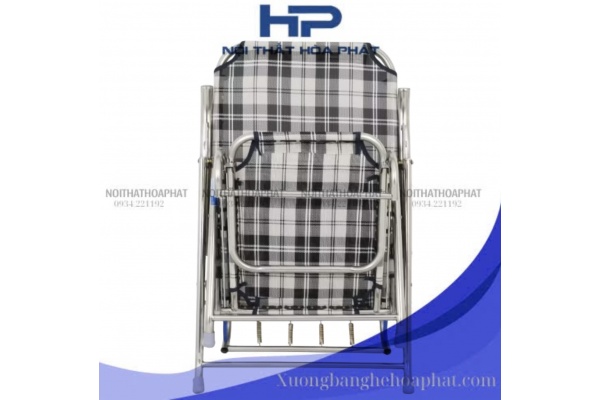 GBX01 - Ghế bố xếp gấp gọn inox 304 Hòa Phát, inox sáng bóng, vải lưới caro cao cấp, thoáng khí, đàn hồi tốt, thư giãn, thoải mái